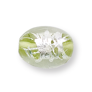 Bead, Preciosa Czech Handmade Lampwork Beads, 15x11mm Flat Oval Silverswirl – Olivine