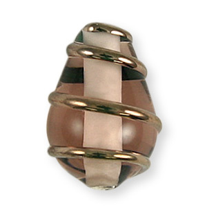 Bead, Preciosa Czech Handmade Lampwork Beads, 15x10mm Drop Goldwire – Rosaline