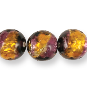 Sold Per: 2 pieces Colour Cat: Purple | Yellow Shape: Round Size: 12mm Finish: Silver Foil Glass Beads Features: Lampwork SKU: 36-93284