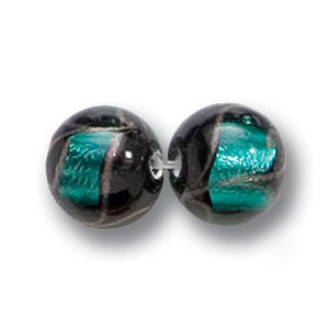 Bead, Preciosa Czech Handmade Lampwork Beads, 10mm Round Silverfoil Capsule – Teal