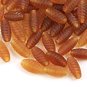 Bead, Preciosa Czech pressed glass, 14x6mm textured oval tube – Amber