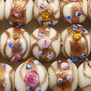 Beautiful handmade Venetian glass beads with fabulous design of gold banding and rose pattern. These gorgeous beads are always popular for all styles of jewelry.