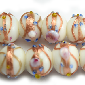 Beautiful handmade Venetian glass beads with fabulous design of gold banding and rose pattern. These gorgeous beads are always popular for all styles of jewelry.