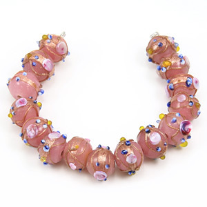 Beautiful handmade Venetian glass beads with fabulous design of gold banding and rose pattern. These gorgeous beads are always popular for all styles of jewelry.
