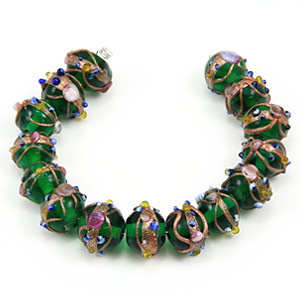 Beautiful handmade Venetian glass beads with fabulous design of gold banding and rose pattern. These gorgeous beads are always popular for all styles of jewelry.