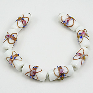 Skip to contentBeautiful handmade Venetian glass beads with fabulous design of gold banding and rose pattern. These gorgeous beads are always popular for all styles of jewelry.