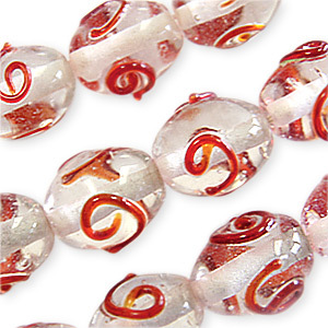 Clear glass with raised, colored swirl designs. These simple beads offer a real class, try using them in a tone on tone design to really emphasize their style. Beads and their hole sizes may vary as they are handmade.