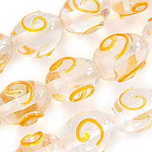 Clear glass with raised, colored swirl designs. These simple beads offer a real class, try using them in a tone on tone design to really emphasize their style. Beads and their hole sizes may vary as they are handmade.