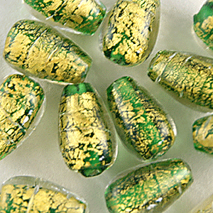 Beads, 24 Karat Gold Drop with Silverfoil, EMERALD