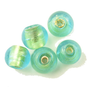 Beads, 10mm 24 Karat Gold Foil Round, AQUA