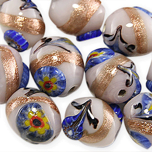 14x11mm Oval w/Fiori Cane Glass Bead – Pink
