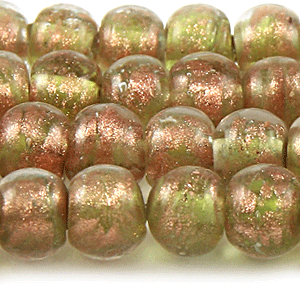 Handmade glass beads with opaque colored center, encased in clear glass with gold, glitter swirls. These fantastic beads are a jewelry artist’s dream; sophisticated, stunning and affordable. Wirewrap these beads next to your favorite chain and pair them with crystal for a truly gorgeous result. Beads and their hole sizes may vary as they are handmade.
