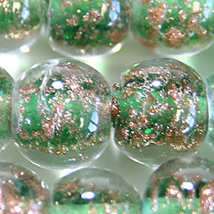 8mm Round Goldswirl Glass Bead – Emerald Green
