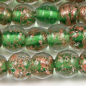 6mm Round Goldswirl Glass Bead – Emerald Green