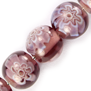 10mm Round Transparent Fiori Glass Bead – Mauve