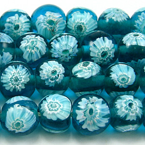 10mm Round Transparent Fiori Glass Bead – Turquoise