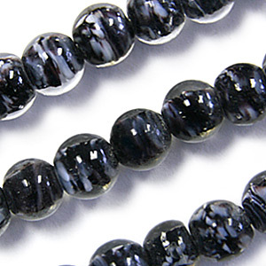 Beads, Glass Beads, 8mm Round Colourswirl, BLACK