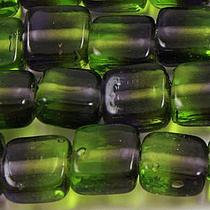 Beads, Glass, 10mm Flat Two-Tone Square, Amethyst/Peridot