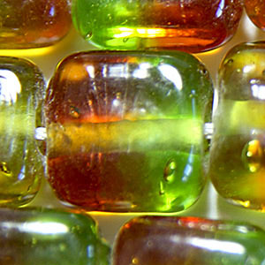 Glass Beads 10mm Flat Square Two-Tone – Olive/Topaz
