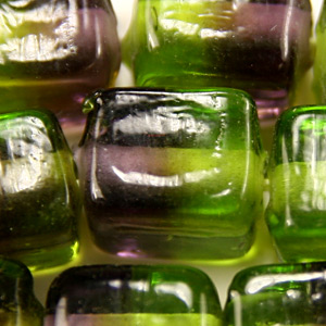 Glass Beads 6x6x8mm Cube Two-Tone – Amethyst/Peridot