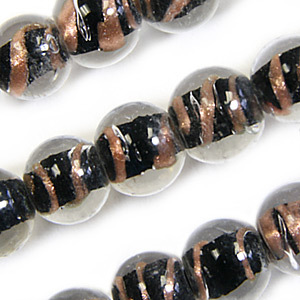 Beads, 10mm Round, Transparent Swirl, BLACK