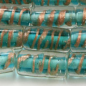 Beads, 15x10mm Tube, Copper Swirl, TEAL AQUA