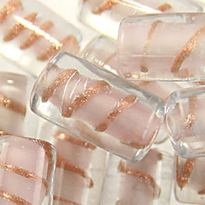 Beads, 15x10mm Tube, Copper Swirl, OPAL PINK