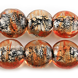 Beads, 10mm Coin, Black Silverfoil, ORANGE