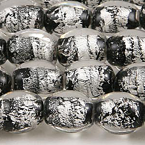 Sold Per: 16"strand (approx. 36 beads) Colour Cat: Black and White Shape: Oval Size: 10mm Finish: Silver Foil SKU: 37-64109R