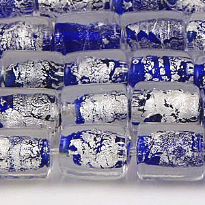 Tubular glass beads with colored centers embellished with silverfoil. Featuring: superbly applied silverfoil accents, intense color and ideal shape. Wirewrap these beads for a fabulous long necklace design or pair them with streling spacers to make a gorgeous pair of earrings. Beads and their hole sizes may vary as they are handmade.