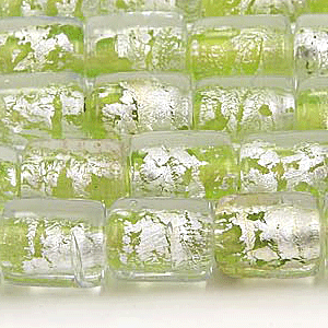 Tubular glass beads with colored centers embellished with silverfoil. Featuring: superbly applied silverfoil accents, intense color and ideal shape. Wirewrap these beads for a fabulous long necklace design or pair them with streling spacers to make a gorgeous pair of earrings. Beads and their hole sizes may vary as they are handmade.