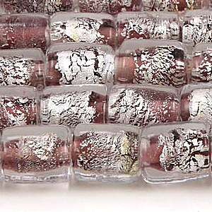 Tubular glass beads with colored centers embellished with silverfoil. Featuring: superbly applied silverfoil accents, intense color and ideal shape. Wirewrap these beads for a fabulous long necklace design or pair them with streling spacers to make a gorgeous pair of earrings. Beads and their hole sizes may vary as they are handmade.