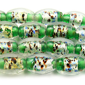Colorlined beads with speckled silverfoil centers, encased in clear glass. These simple oval beads have been embellished beautifully with silverfoil covered in points of color. Delicate detailing and complexity of color gives these beads a truly original artistry. Beads and their hole sizes may vary as they are handmade.