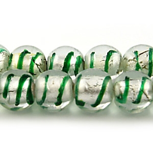 Simple and attractive, the silverfoil center of these beads give them great shine and their striping adds a sophisticated touch of color. Beads and their hole sizes may vary as they are handmade.
