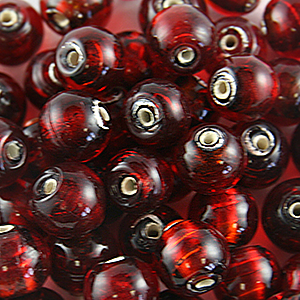 Sold Per: 16" strand (approx. 53 beads) Colour Cat: Red Shape: Round Size: 8mm Finish: Silver Foil | Transparent Glass Beads Features: Lampwork SKU: 37-6602R