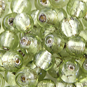 Bead, Lampwork Glass 8mm Round Silverfoil Transparent – Chartreuse, holesize 1.5mm