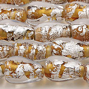Stunning handmade glass drops with colorful, silverfoil centers and layers of clear glass encasing. These drops make exquisite earrings and necklace pendants. Beads and their hole sizes may vary as they are handmade.