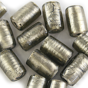 Sold Per: 4"strand (approx. 7 beads) Colour Cat: Black and White Shape: Tube Size: 15mm Finish: Silver Foil SKU: 37-67608R