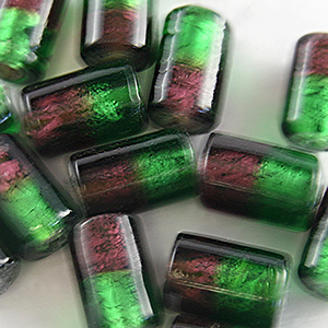Two-tone glass beads with silverfoil lining. The silverfoil of these beads gives them a fantastic shimmer and sparkle in the light. Have fun playing with color combinations and really exploring ways to show of these gorgeous beads. Beads and their hole sizes may vary as they are handmade.
