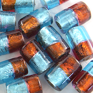 15x10mm Tube Two-Tone Silverfoil -Topaz/Aqua