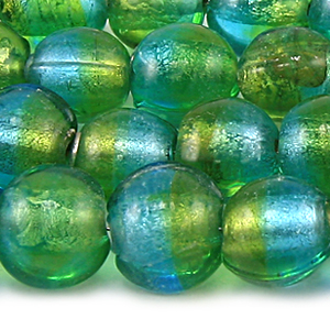 Two-tone glass beads with silverfoil lining. The silverfoil of these beads gives them a fantastic shimmer and sparkle in the light. Have fun playing with color combinations and really exploring ways to make these great beads pop! Beads and their hole sizes may vary as they are handmade.
