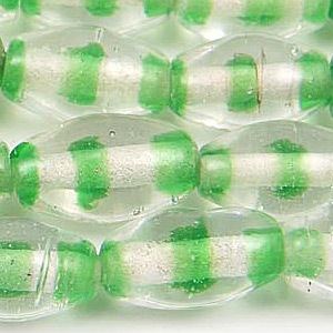 Beads, Glass Beads, 7x12mm Oval Ringed, GREEN