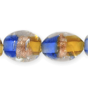 Fabulous handcrafted two-tone and gold striped beads, encased in several layers of clear glass for a feeling of depth. These colorful beads make great focal beads in your fun necklace, bracelet or earring designs. Try combining with gold beads, findings and chain. Beads and their hole sizes may vary as they are handmade.