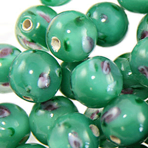 Handcrafted, opaque bead encased in a thin layer of clear glass with pink flower designs. These delicately detailed beads look especially lovely next to crystal beads or semi precious gemstones. Beads and their hole sizes may vary as they are handmade.