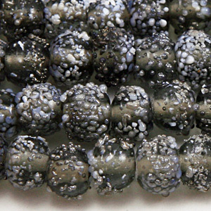 The attractive, transparent beads are dusted with a coating of fine glass, giving them a fantastic texture and a truly unique look. Beads and their hole sizes may vary as they are handmade.