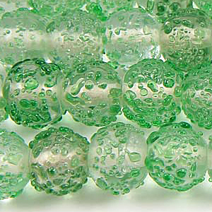 The attractive, transparent beads are dusted with a coating of fine glass, giving them a fantastic texture and a truly unique look. Beads and their hole sizes may vary as they are handmade.