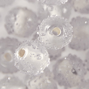 The attractive, transparent beads are dusted with a coating of fine glass, giving them a fantastic texture and a truly unique look. Beads and their hole sizes may vary as they are handmade.