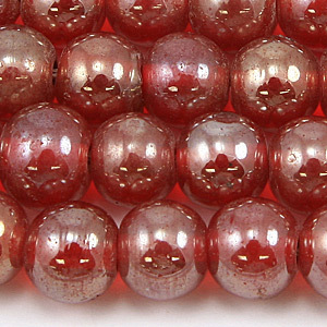 Beads, 10mm Round, Transparent Lustre, RED