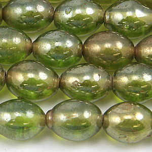 Beads, Glass Beads, 8x10mm Oval Transparent Lustre, CHARTREUSE