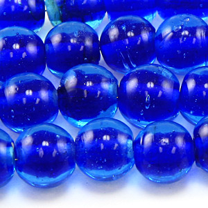 These beads feature a dark blue center, encased in a lighter transparent blue glass, giving them a unique layered look. Try mixing these beads with crystal or sterling silver for a great result. Beads and their hole sizes may vary as they are handmade.